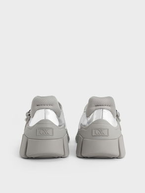 Switch up a casual ensemble when you slip into these silver thick sole sneakers. Try these kicks on with cropped jeans, and an oversized top. Throw on your favourite crossbody to complete your fashion girl look.