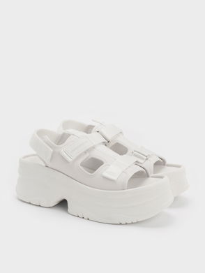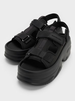 Complete your athleisure-inspired look with these sandals made in a versatile and flattering beige colour. At 5cm, the chunky cleated sole adds some height without compromising on a comfortable fit, plus the double Velcro straps ensure walkability and movement with ease. Slip these sports sandals on for an effortless weekend look no matter where you are heading. Style them with a crop top, joggers and a belt bag for a stylish day out.