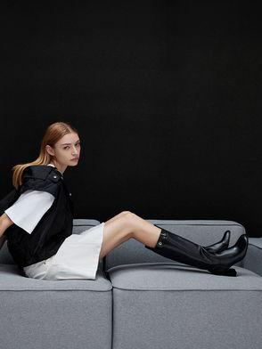 You need to flaunt these wear-with-everything calf boots, stat. Features we can't get enough of: the sturdy chunky heel, comfy almond toe and stylish felt finish. Take your street style to the next level when you pair these with your favourite black leather pants and a ribbed toga top.