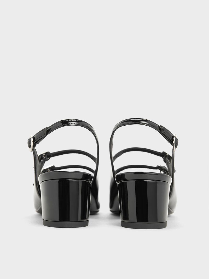 Step into timeless elegance with these Mary Janes in glossy black, which feature a distinctive double-strapped design. The sleek and polished finish exudes sophistication, while the distinctive yet delicate straps add a modern flair to this enduring shoe style. These Mary Janes also come with 4cm block heels to offer a sturdy stature boost - these shoes are great for both work and play.
