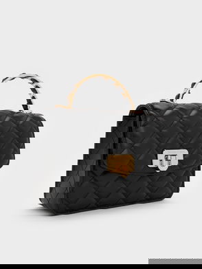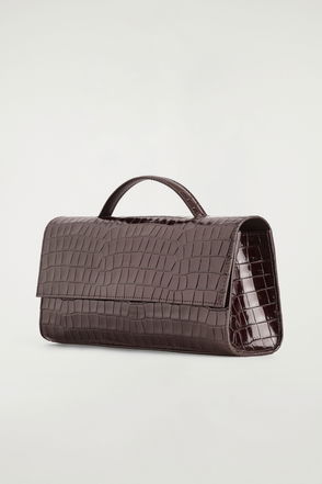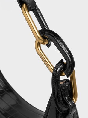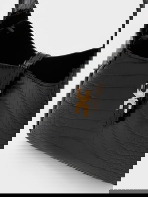 Ace your workday with this shiny black mock croc bag. Equal parts cool and classic, it will slot easily with your go-to weekday looks, from pantsuits to structured dresses. Complete your ensemble with patent court shoes. Front flap with magnetic closure. Comes with adjustable strap (detachable).