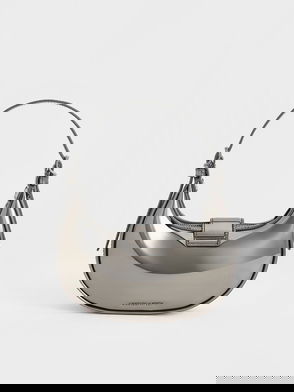 On par for the party scene, this baby blue croc-stamped clutch boasting a striking hammered-effect metal accent is all kinds of glam. Use it to break up an all-black ensemble.