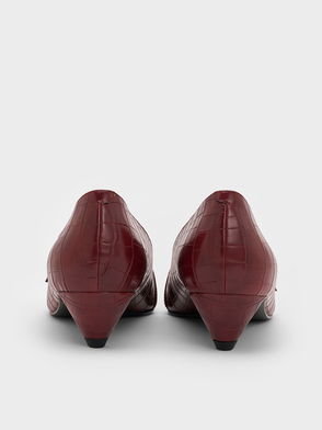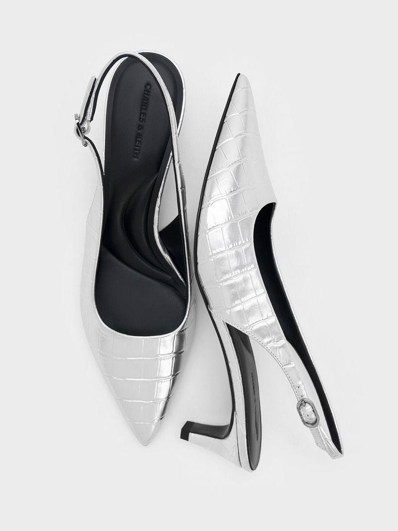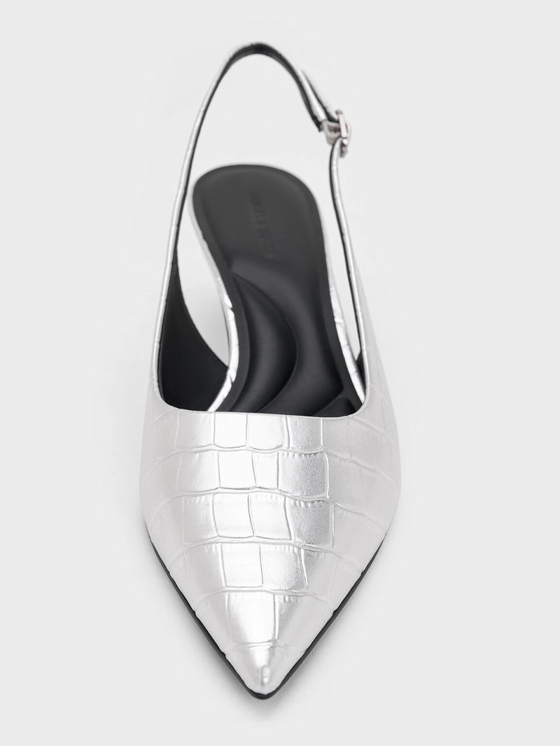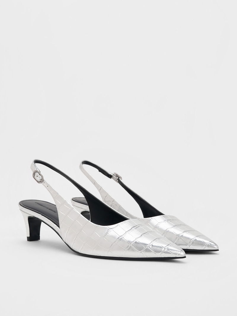 Croc-Effect Pointed-Toe Kitten-Heel Slingback Pumps