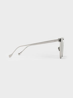Made in a sleek silver finish that instantly adds a sophisticated edge to any look, these irresistible aviator sunglasses are a go-to pair no matter the season. Elements we are loving: the modern cut-out design and the gradient-tint lenses. Accentuate your classic style by donning this timeless icon out on a sunny day. Match these sunglasses with a linen button-down and tailored shorts for a breezy all-day look. Aviators are perfect for oval and heart-shaped faces.