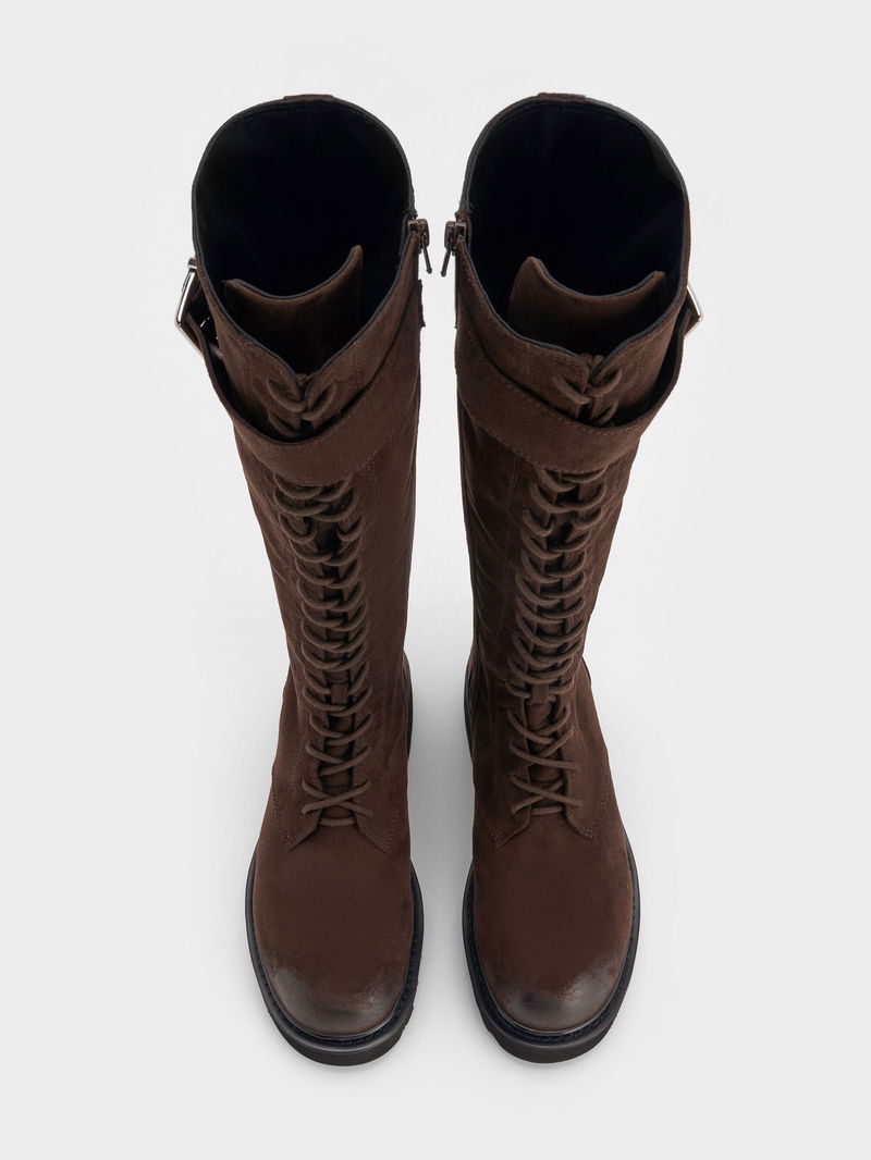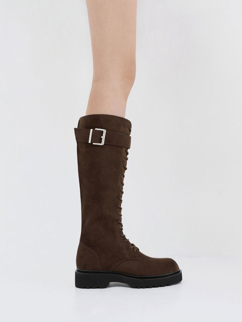 Darian Faux Suede Lace-Up Buckle-Strap Knee-High Boots