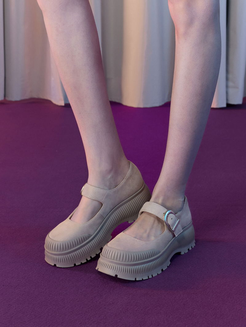 Darra Faux Suede Ridged-Sole Platform Mary Janes