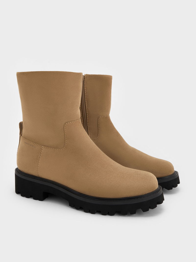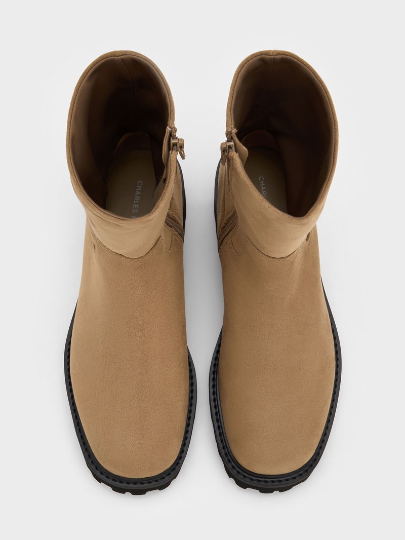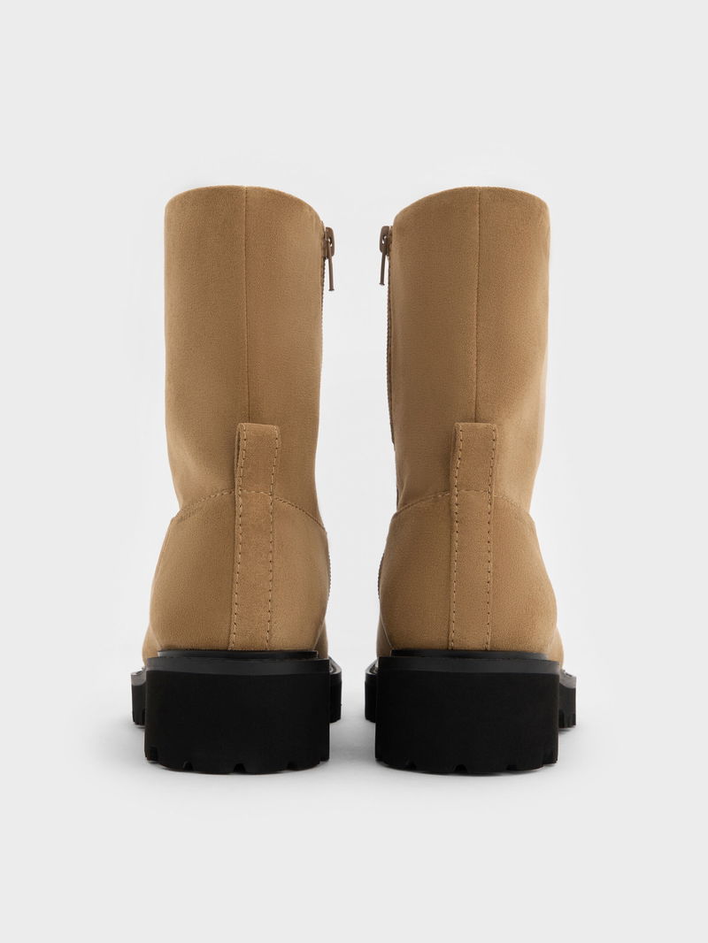 Devan Faux Suede Side-Zip Ridged-Sole Calf Boots