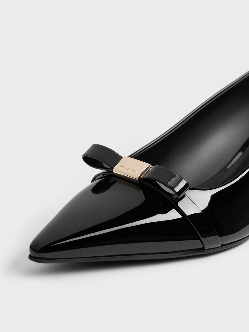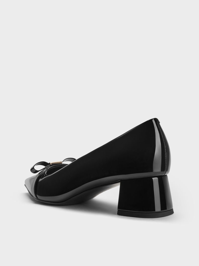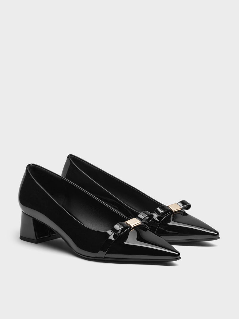 Dorian Patent Bow Pointed-Toe Block-Heel Pumps