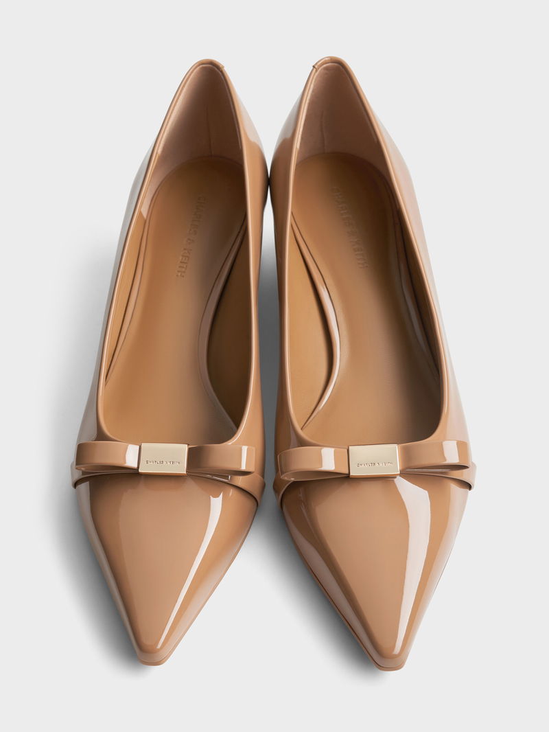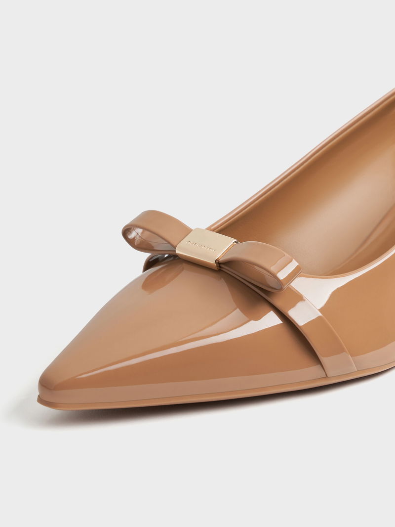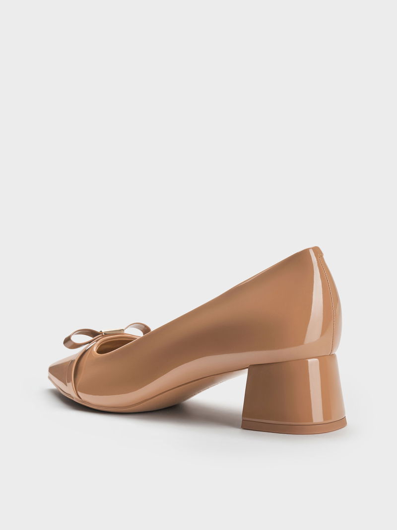Dorian Patent Bow Pointed-Toe Block-Heel Pumps