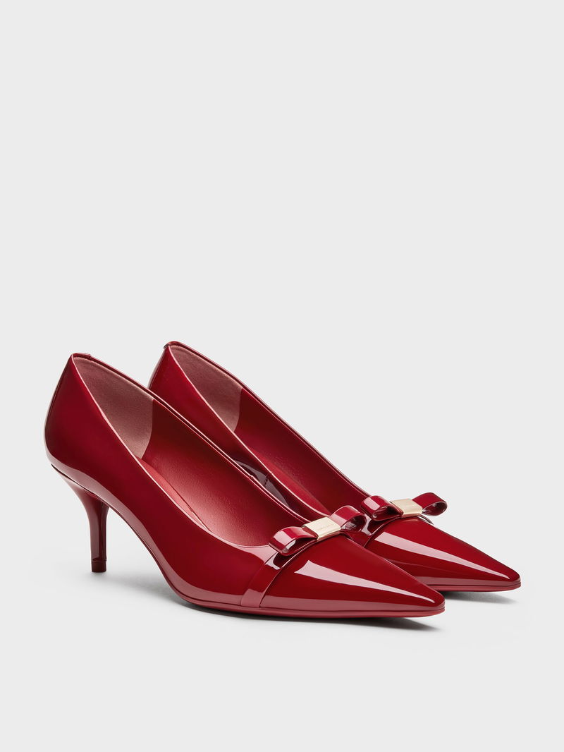 Dorian Patent Bow Pointed-Toe Stiletto-Heel Pumps