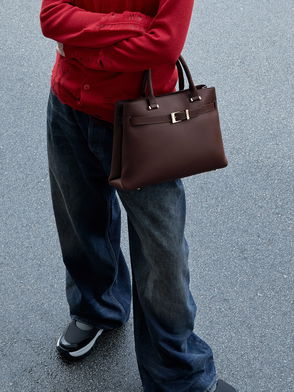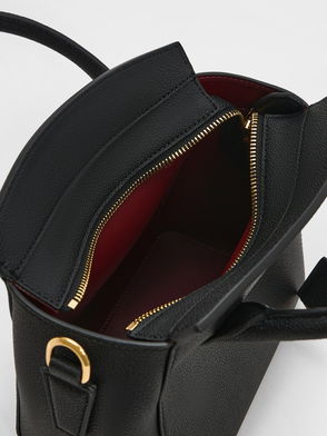 Everything you need in a one sleek package. Featuring a roomy interior, an adjustable strap and a trapeze design, this large tote was designed for the modern go-getter. Its classic black finish makes it a breeze to incorporate into any workwear wardrobe too. Let this versatile tote tag along on a busy day with no fuss. Use it to anchor a utilitarian power suit -- insert street-smart block heel mules and you are good to go.