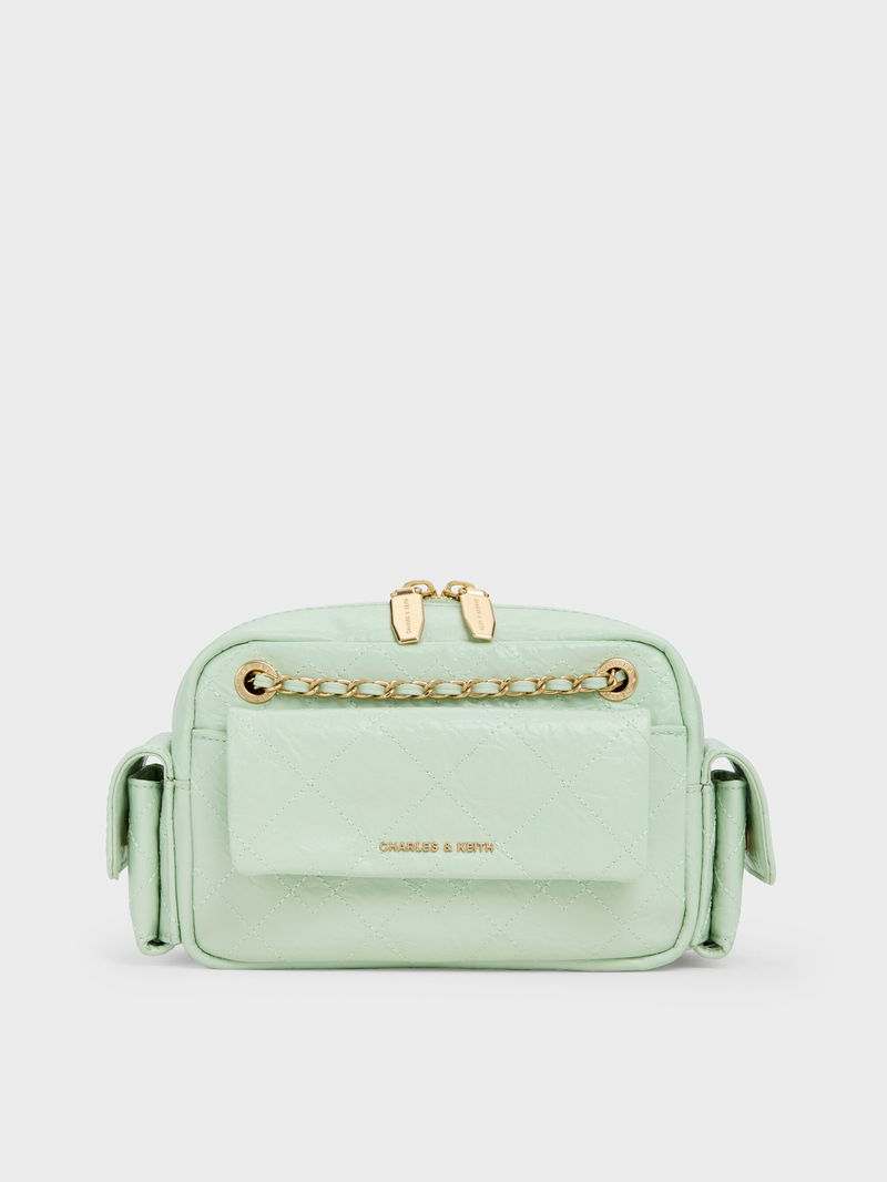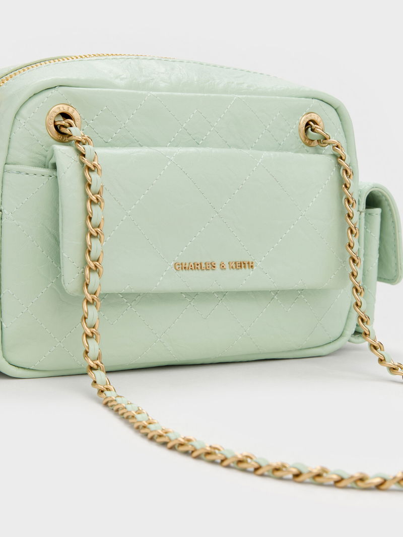 This Duo crossbody bag in mint green features a quilted design, a stylish braided strap and handy pockets on its front and sides. Equal parts stylish and practical, this eye-catching carrier is great for both travel and everyday use.