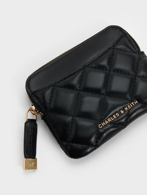 This Duo wallet in black features a diamond-quilt stitch-trim design, a top zip and a snap-button closure. Carry it in the palm of your hand during quick errand runs or slip it into your everyday bag.