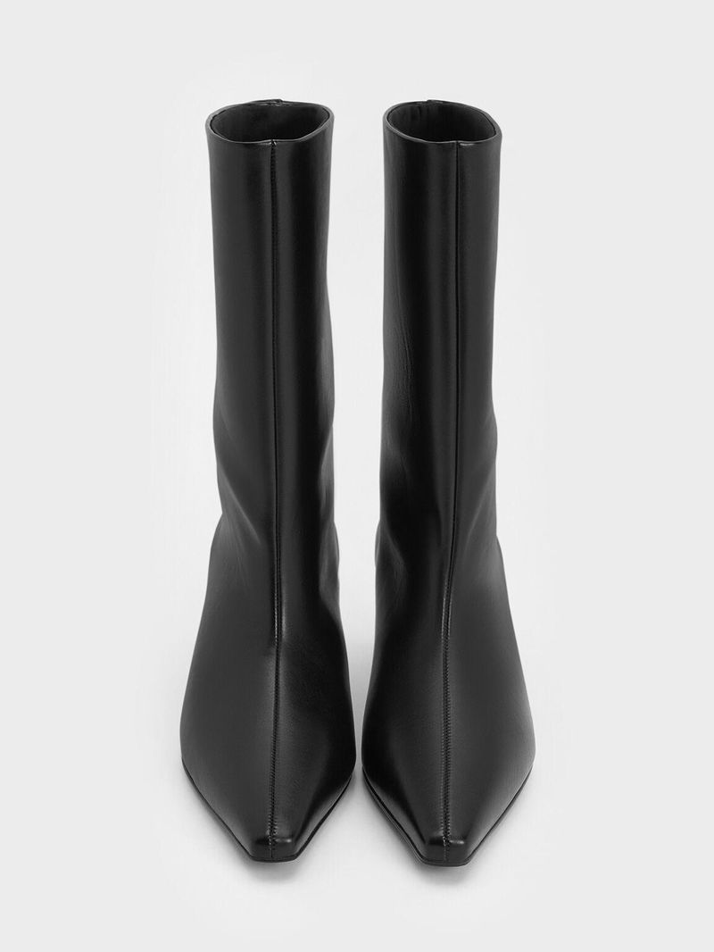 Elongated Square-Toe Kitten-Heel Calf Boots