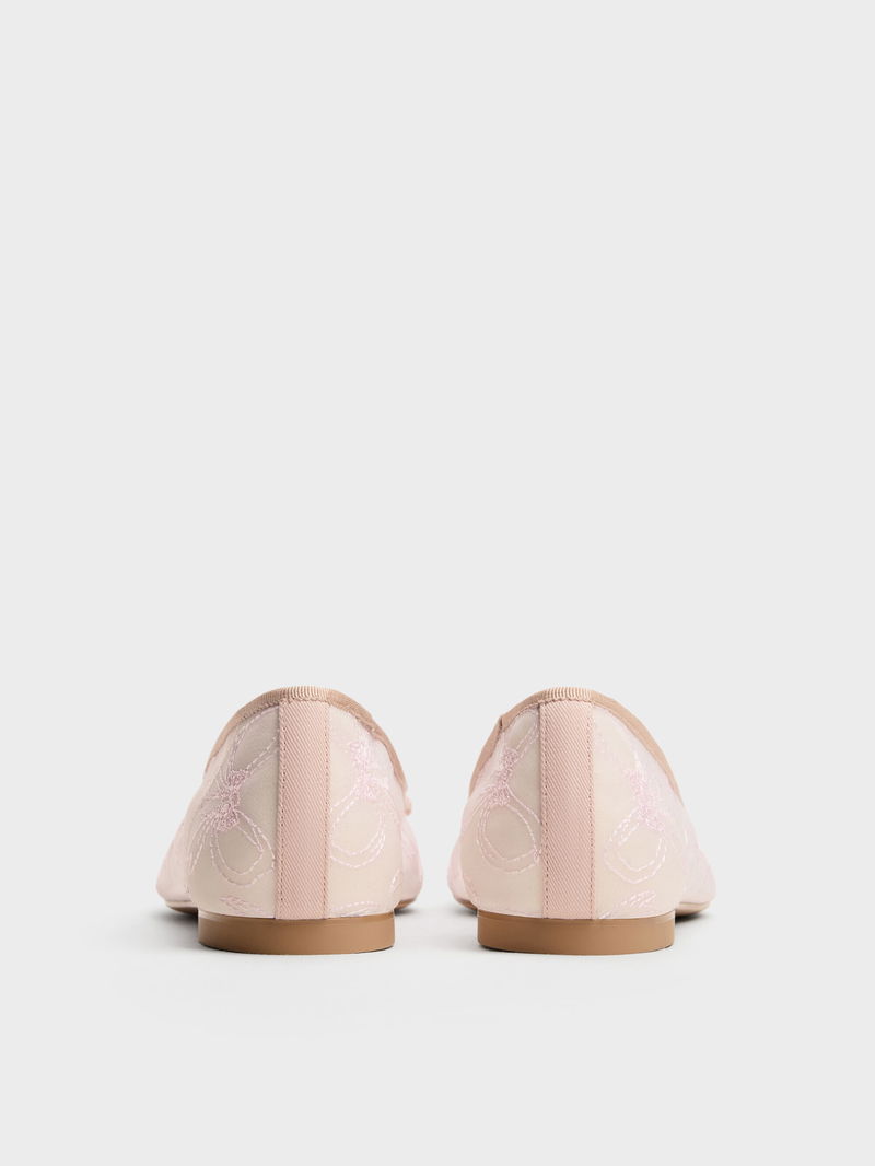 These ballet flats in light pink feature charming embroidered bow motifs on their uppers, covered round toes and very low block heels. Let them bring a youthful, coquette-inspired touch to your ensembles.