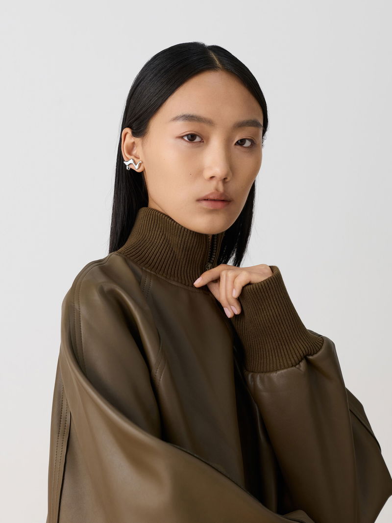 These Emilia earrings in silver feature a wavy drop design, a sleek, polished finish and fluid curves. Wear them to add a striking detail both modest workday ensembles and relaxed off-duty looks.