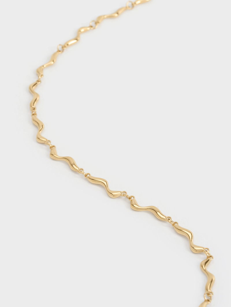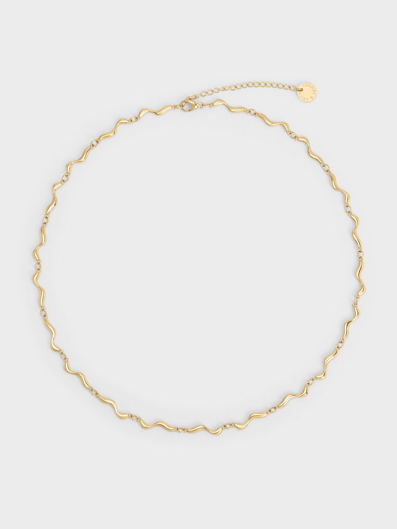 This Emilia circle necklace in gold features a sculptural, wavy design that is simple yet striking.