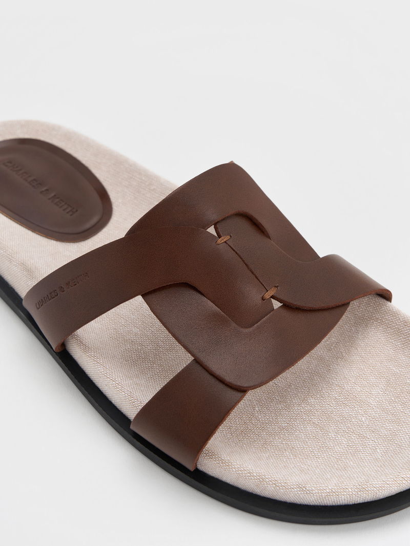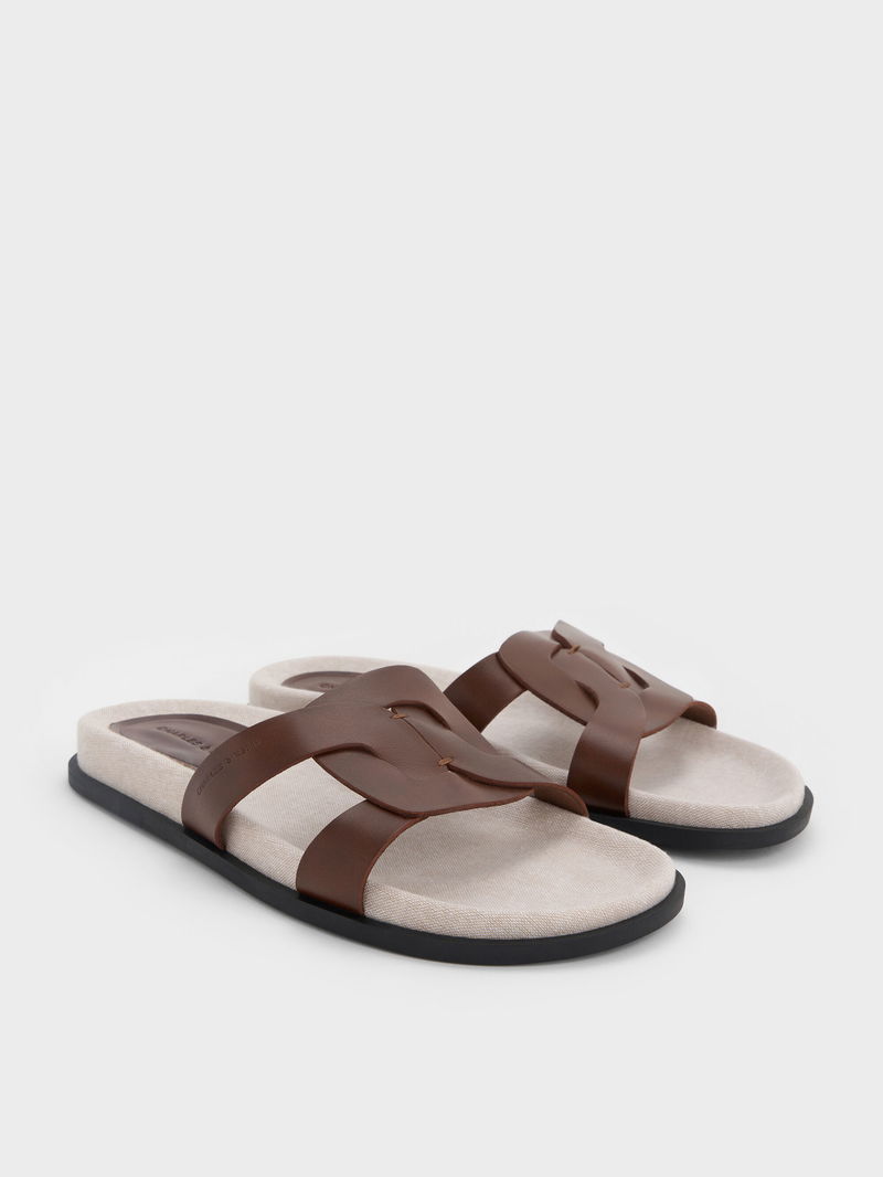 Fannie Linen Interwoven Cut-Out Slide Sandals