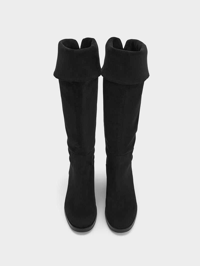 Faux Suede Fold-Over Back-Tie Thigh-High Boots