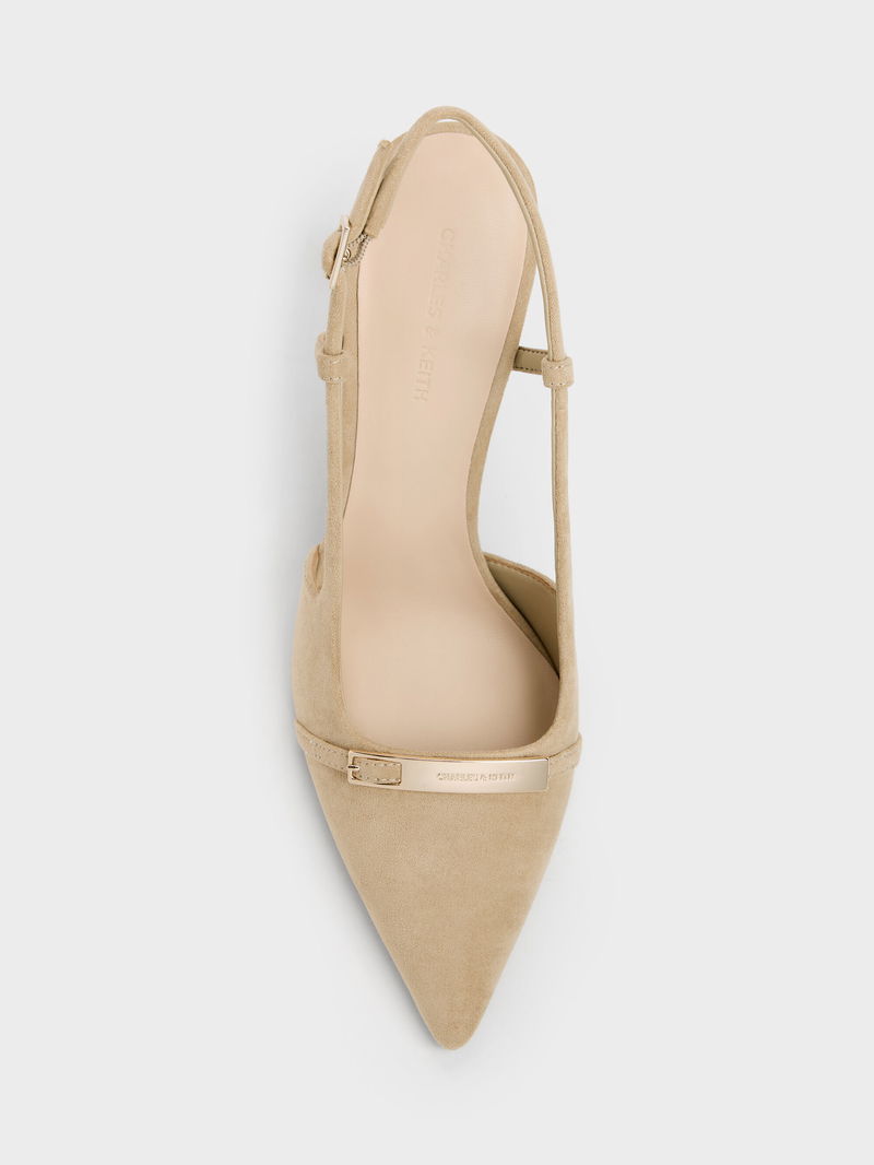 Faux Suede Metallic-Bar Pointed Slingback Pumps