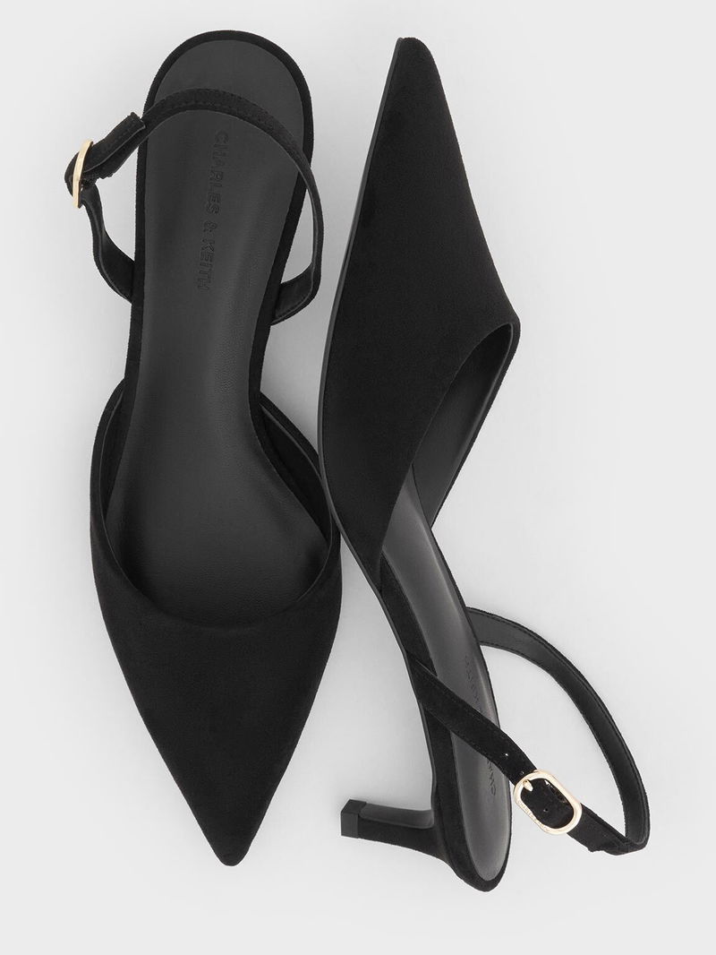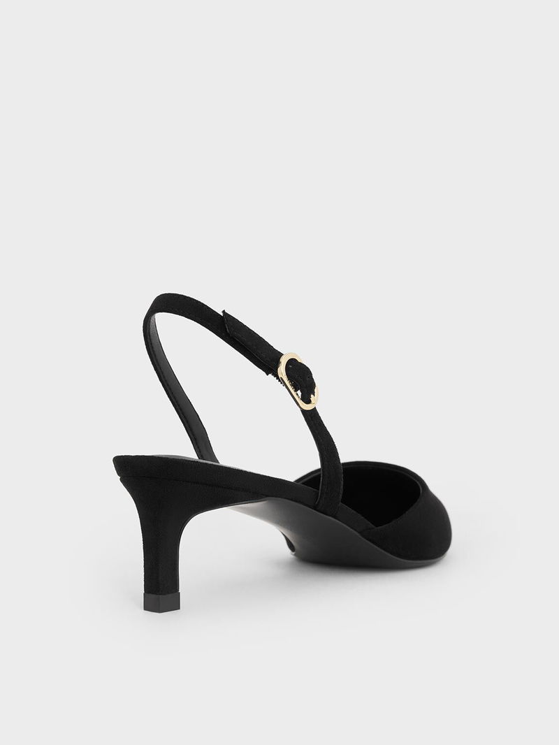 Faux Suede Pointed-Toe Slingback Kitten Heels