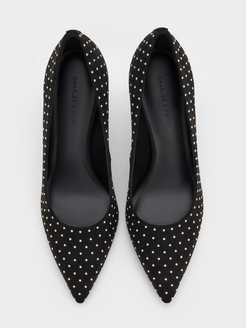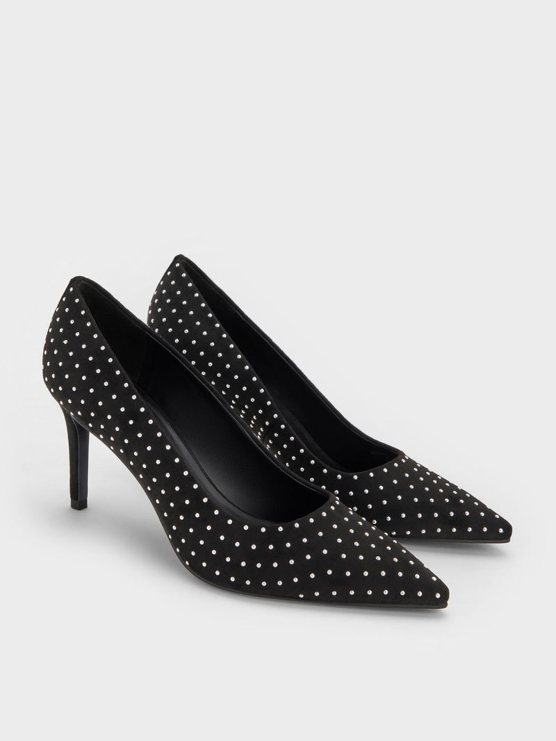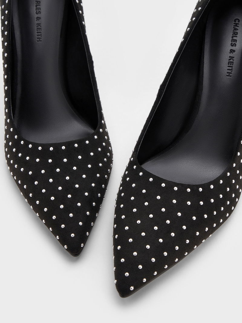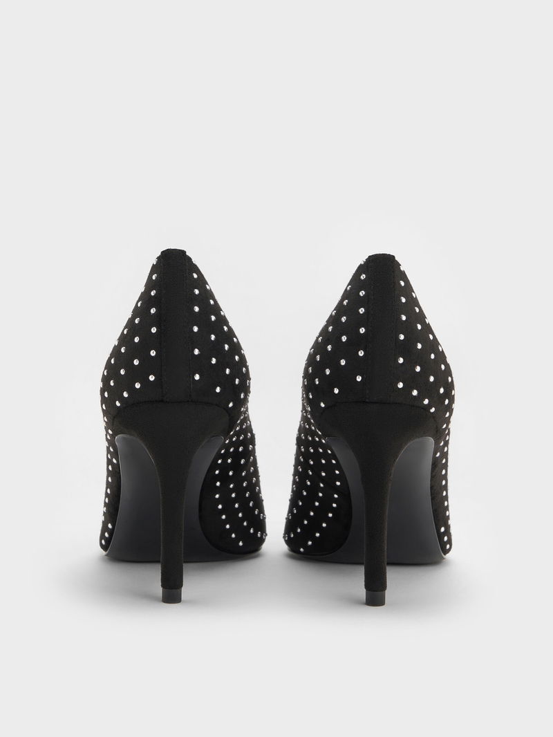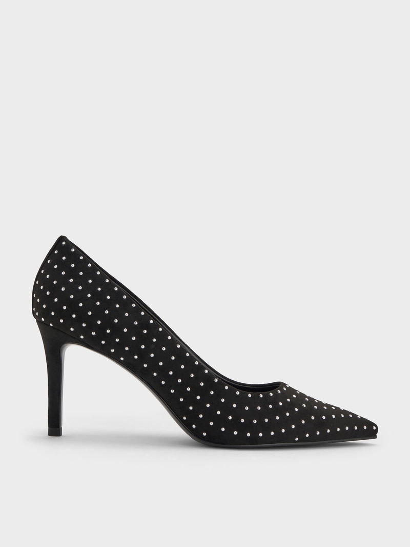 Faux Suede Studded Pointed-Toe Pumps