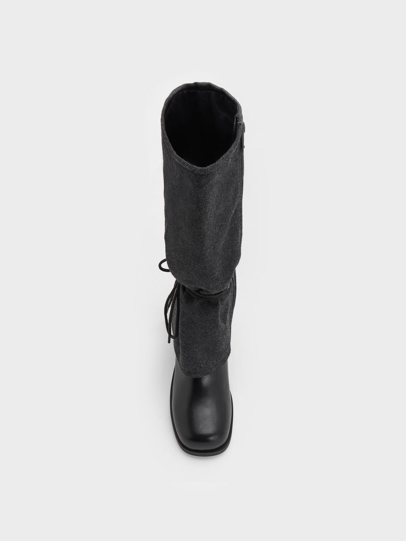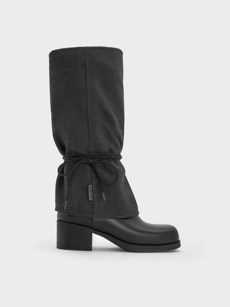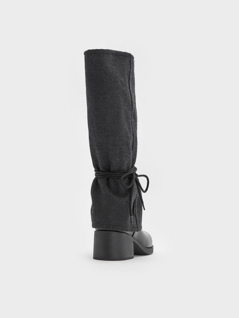 Felt Tie-Around Knee-High Boots