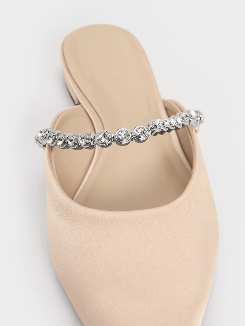 Flores Recycled Polyester Gem-Strap Metallic Flat Mules