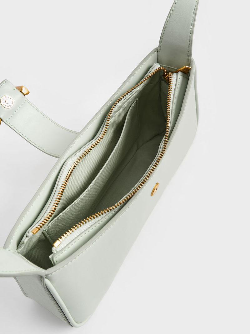 Feminine and bold, this Gabine shoulder bag is an instant serotonin booster on days when you are out and about. The sculpted curved lines and fresh mint finish is perfect for the modern woman. The single top handle and detachable shoulder strap also offer carrying versatility. Style it up with a racer top, straight-leg jeans and platform sneakers for a stylish finish.This item is from the brand's E-Edition, which consists of colourways and designs that are exclusively available online.