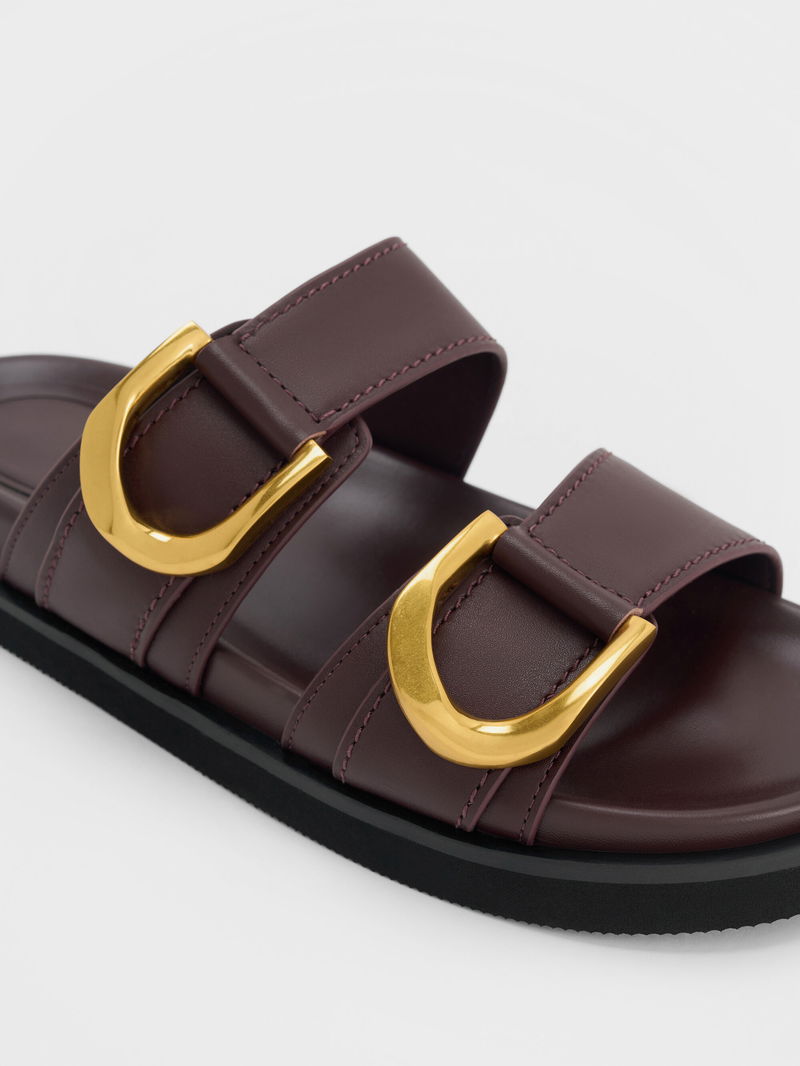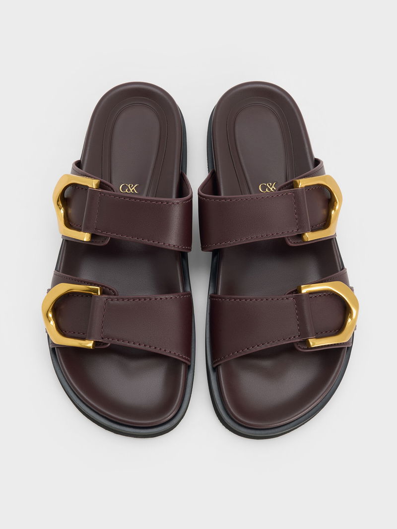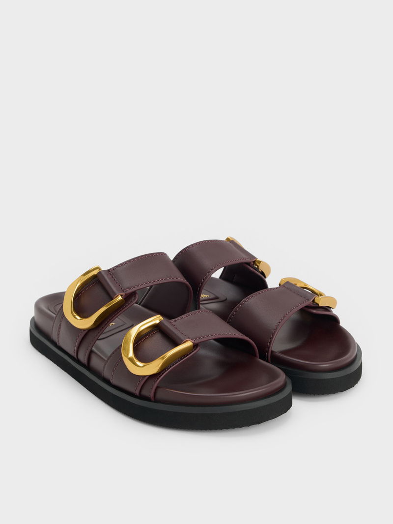 Gabine Gold-Buckle Leather Slides