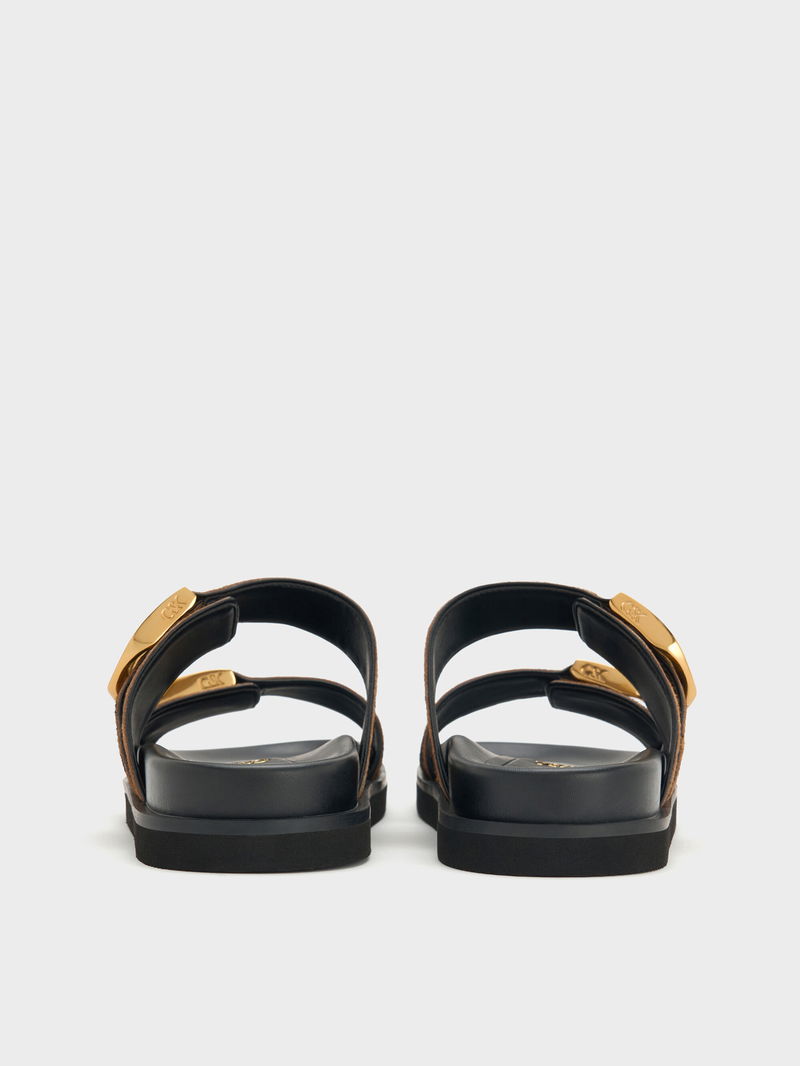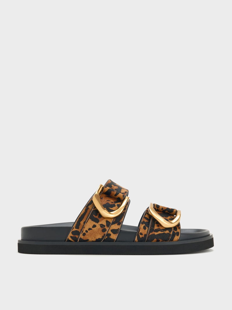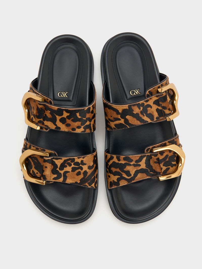 Gabine Leopard-Print Gold-Buckle Leather Slides