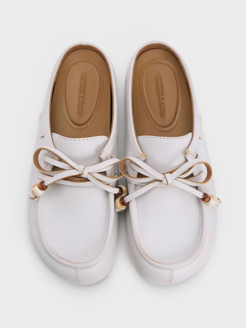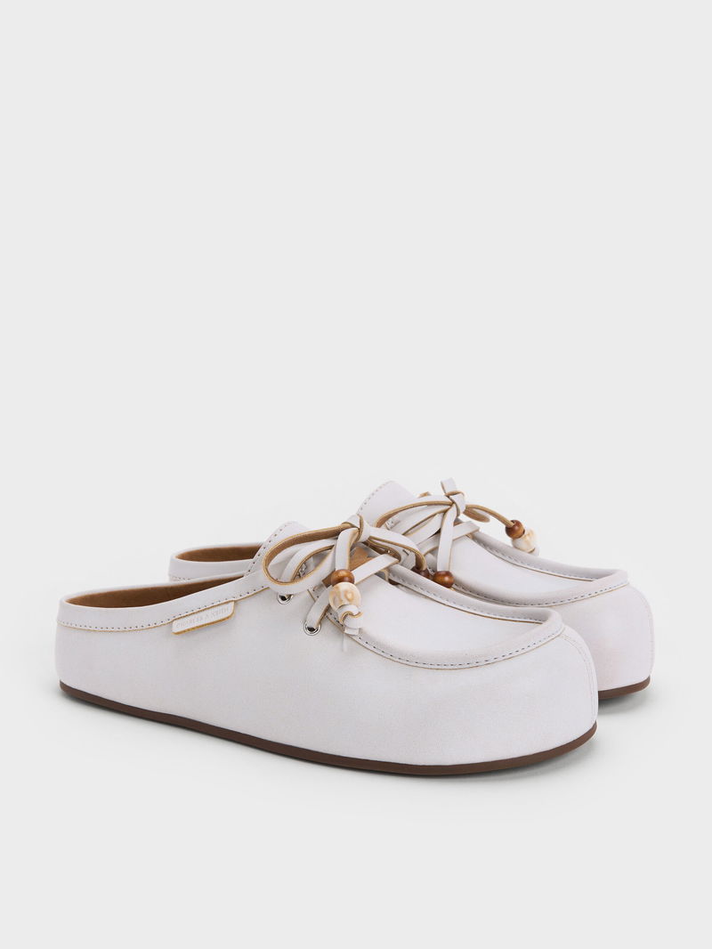 These Gale mules in white feature beaded lace details, rounded square toes, comfortable flatform soles and an easy-wearing slip-on design. They will complement casual off-duty outfits with their versatility and effortless style.