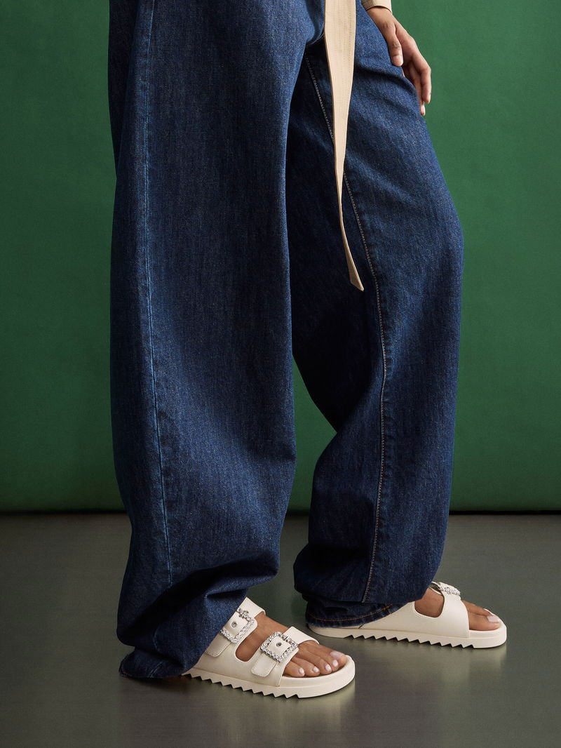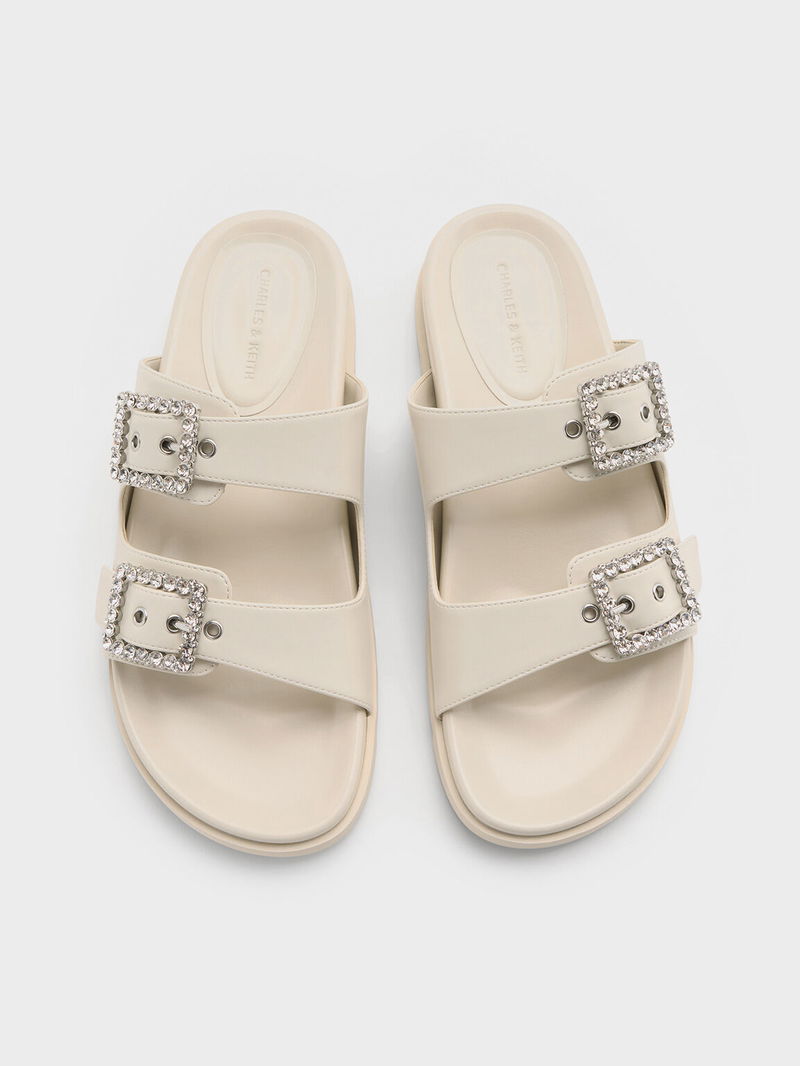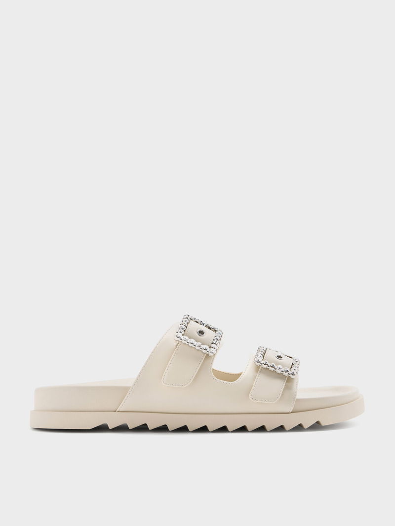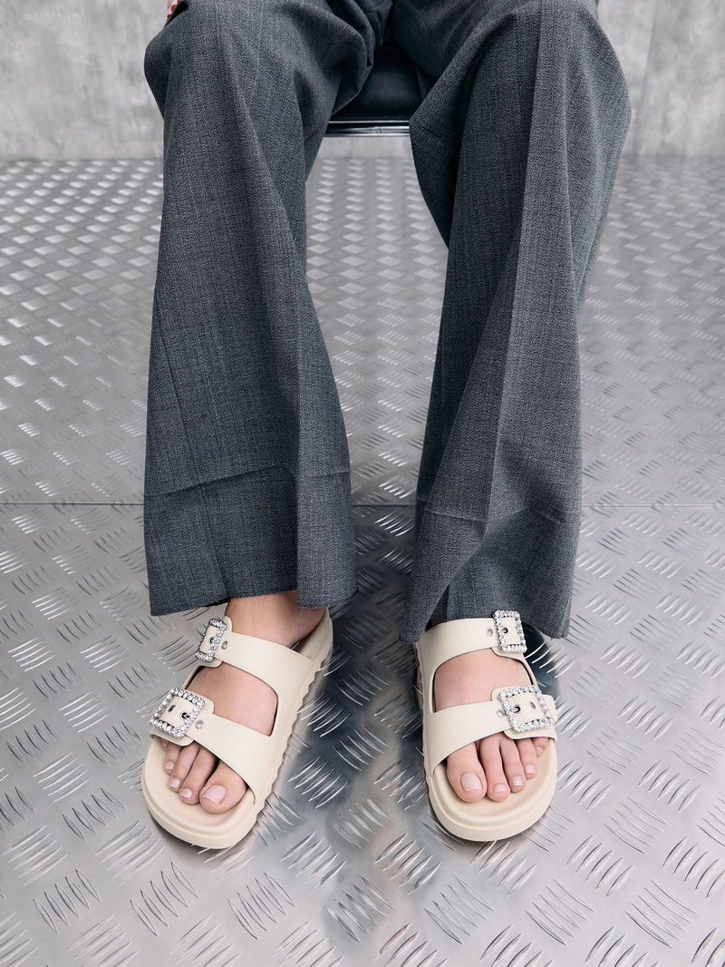 Gem-Buckle Double-Strap Sandals