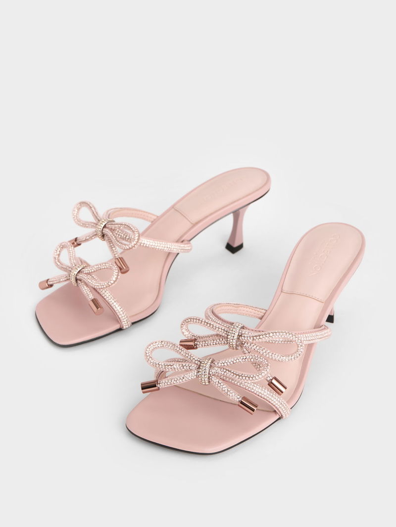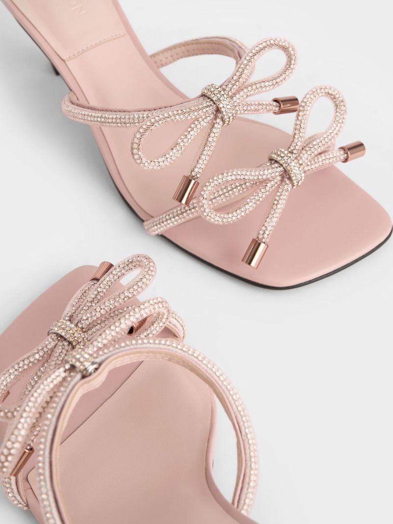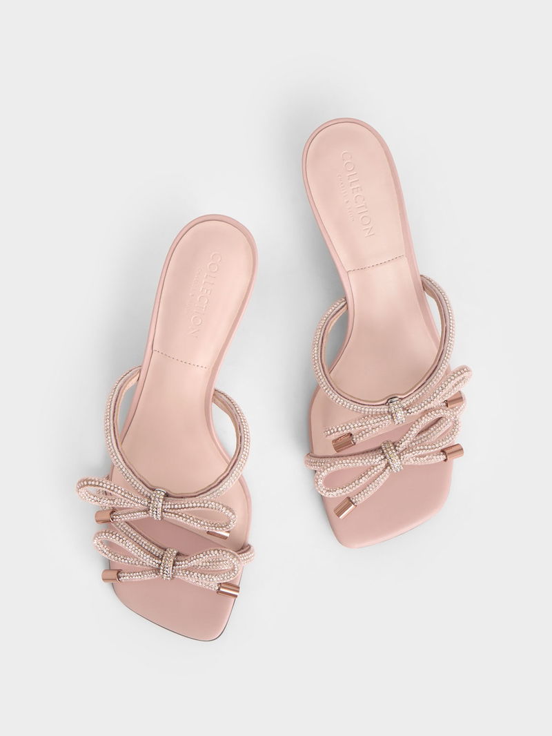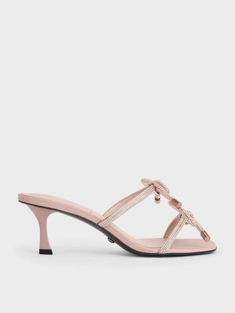 If you are looking for an easy way to elevate your heels collection this season, these exquisite mules will do just the trick. In nude, this pretty pair will satisfy those with a penchant for neutral palettes. Adorned with elegant gem-embellished bow-ties, they will spruce up any look with minimal effort. Try pairing them with a tie shoulder ruffle dress and an interwoven clutch bag.