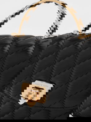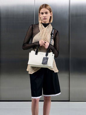 Compact, convenient and absolutely chic, this crossbody bag is a wardrobe staple for all seasons. Tuck away your everyday items in the inner compartment and rest easy knowing they stay safe with the push-lock closure. Featuring a distinctive geometric design as well as a luxurious chain handle, step out in style whenever you have this beauty by your side. Opt for a power workday look by styling it with a white blazer and nude pumps.