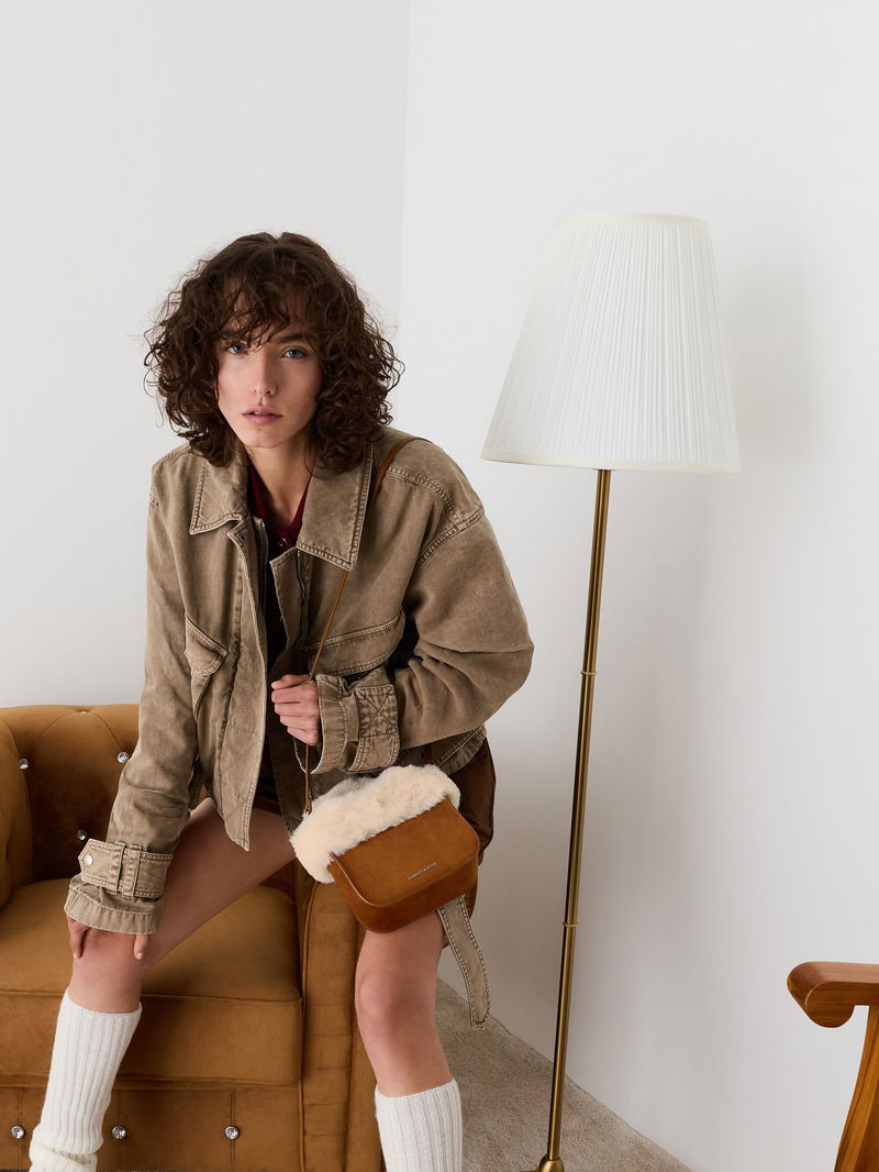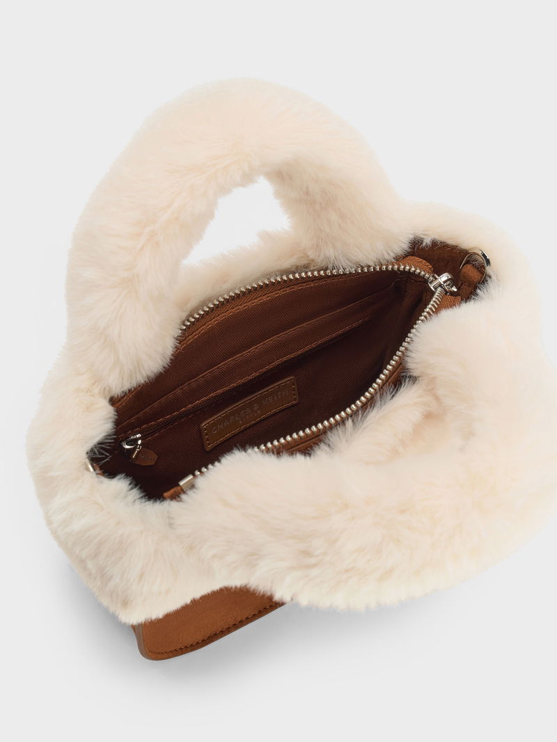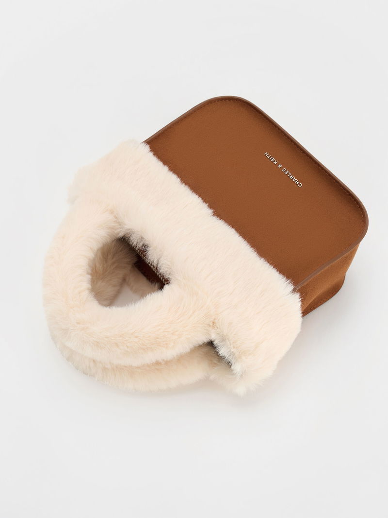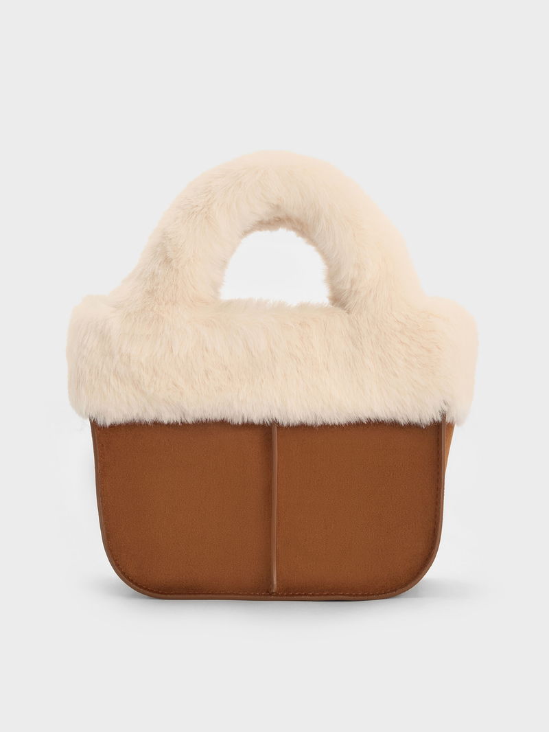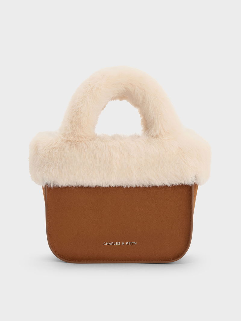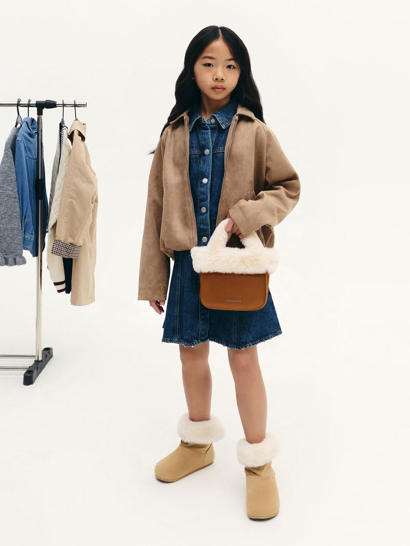 This Wendy tote bag for girls in brown features faux fur trims, double handles and a boxy silhouette. It also comes with a detachable shoulder strap. Use it to introduce playful details and cosy texture into your little one's everyday outfits.