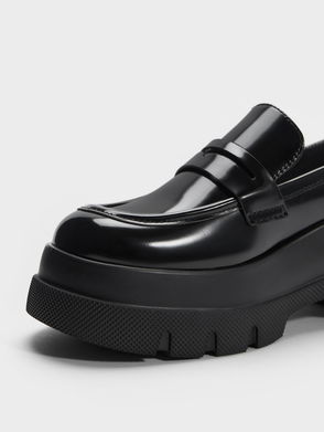 Play up stuffy workwear with these glossy black loafers. Nail an androgynous aesthetic when you team them with flare pants and a plain black tee.