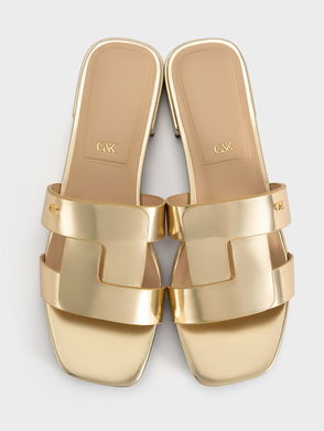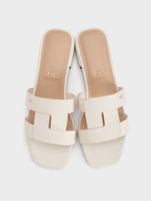 Sweet slide sandals that exude added polish thanks to some exquisite hardware. Nail your laidback look when you pair these chalk flats with a flare frock and a rattan clutch.