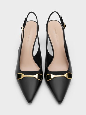 Channel your favourite hollywood starlets in these black slingback pumps. Boasting grommet details for added edge, match them to a sleeveless wrap dress for summer date nights.