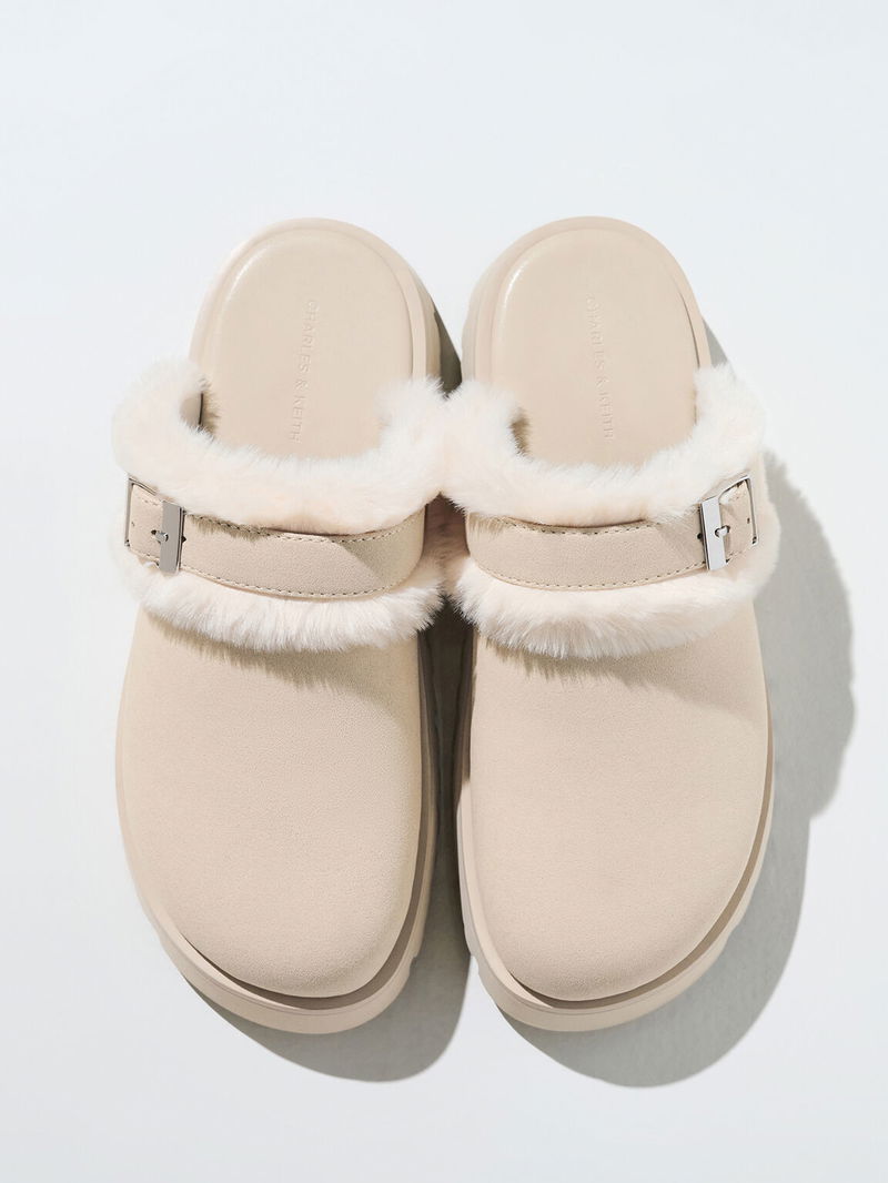 Hannah Textured Fur-Trim Buckled Mules