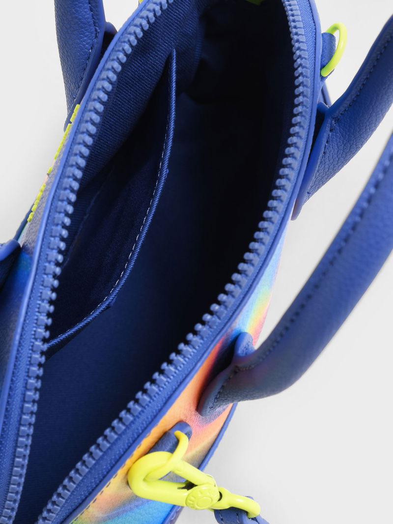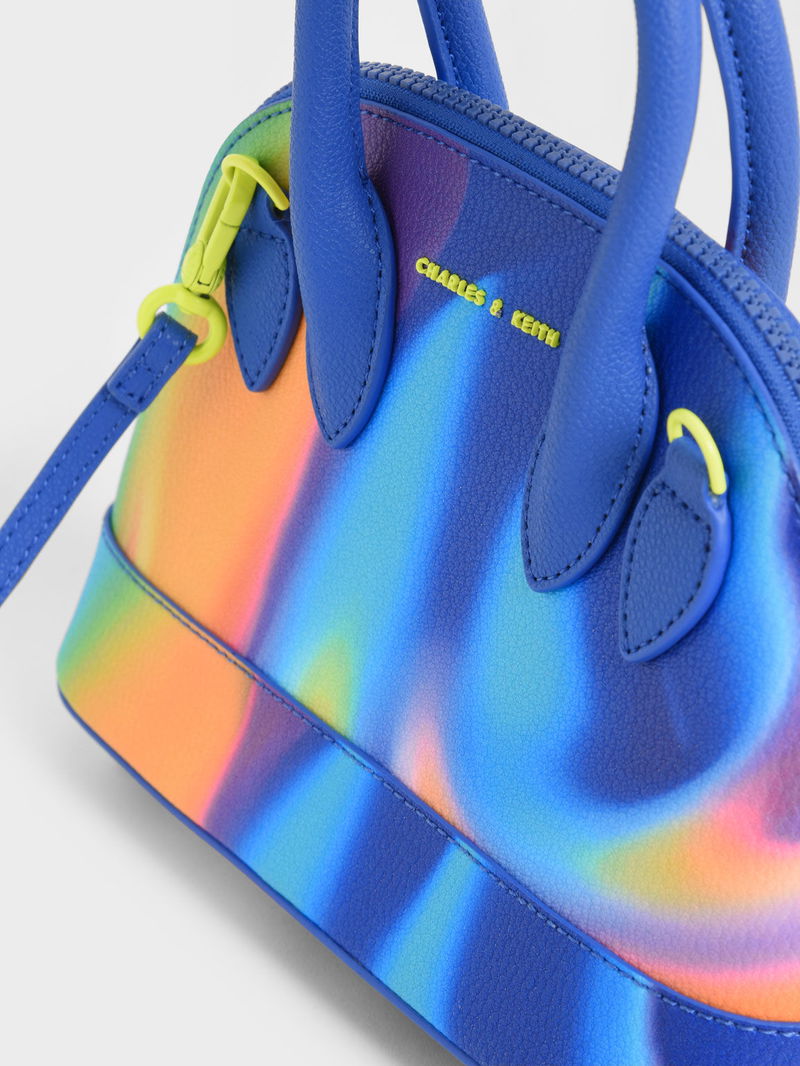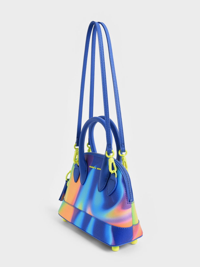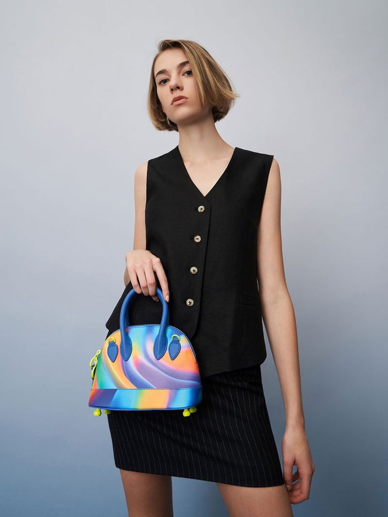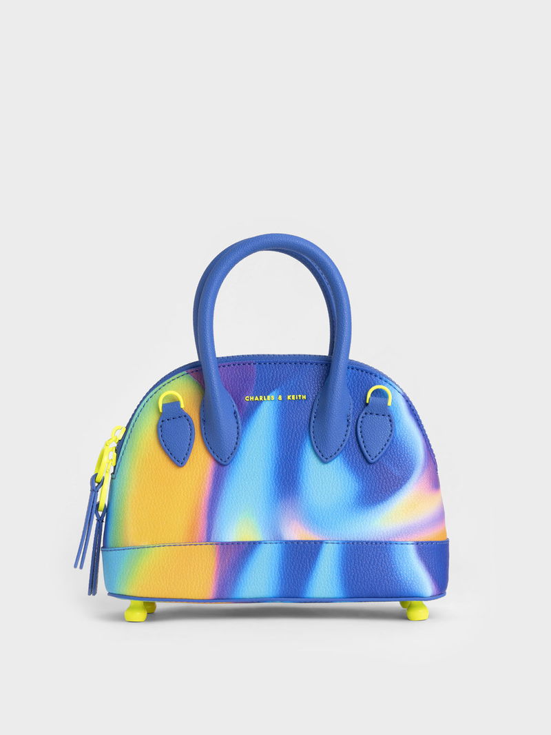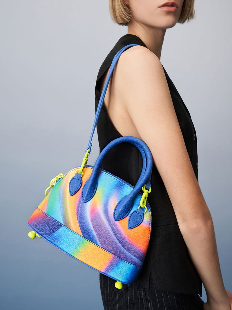 Make an impossible-to-miss fashion statement with our Harmonee bowling bag. Featuring an eye-catching psychedelic print, which is accentuated by the fluorescent accents of the bag's neon hardware, this bag is definitely not for the faint-hearted. Opening up to reveal a roomy interior, you will be surprised by how functional this statement piece is. Go all out by pairing the Harmonee with a neon top and wide-legged jeans to create a bold maximalist look.