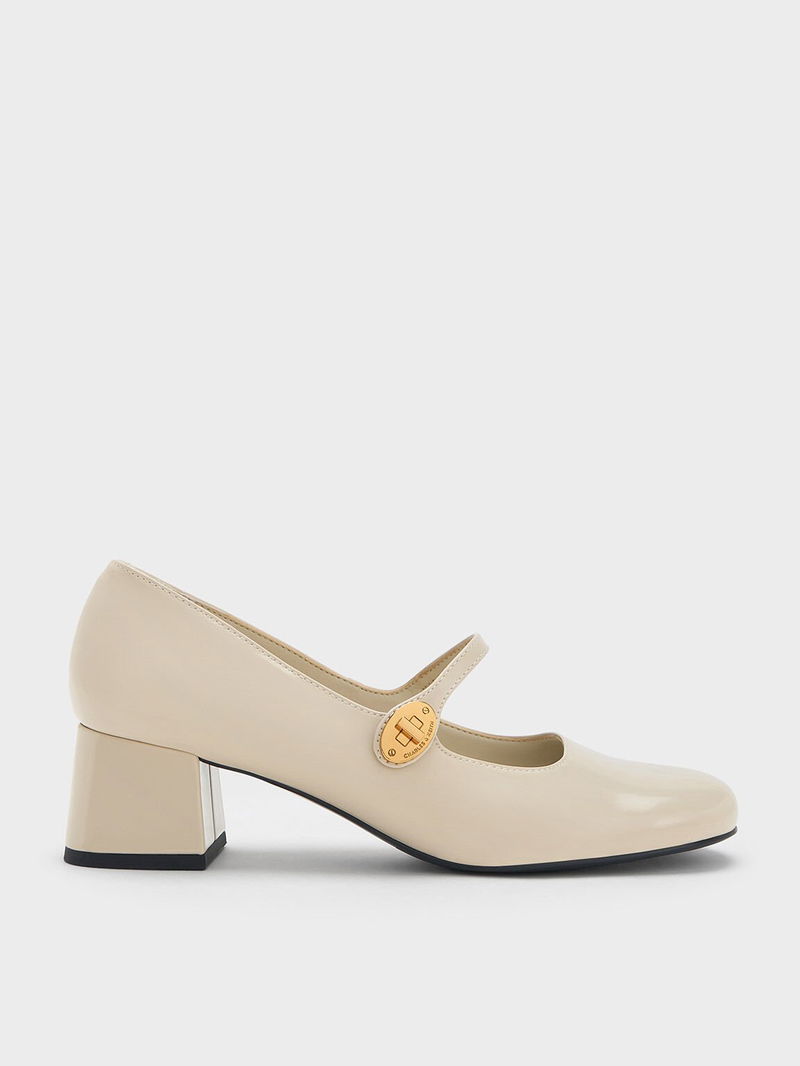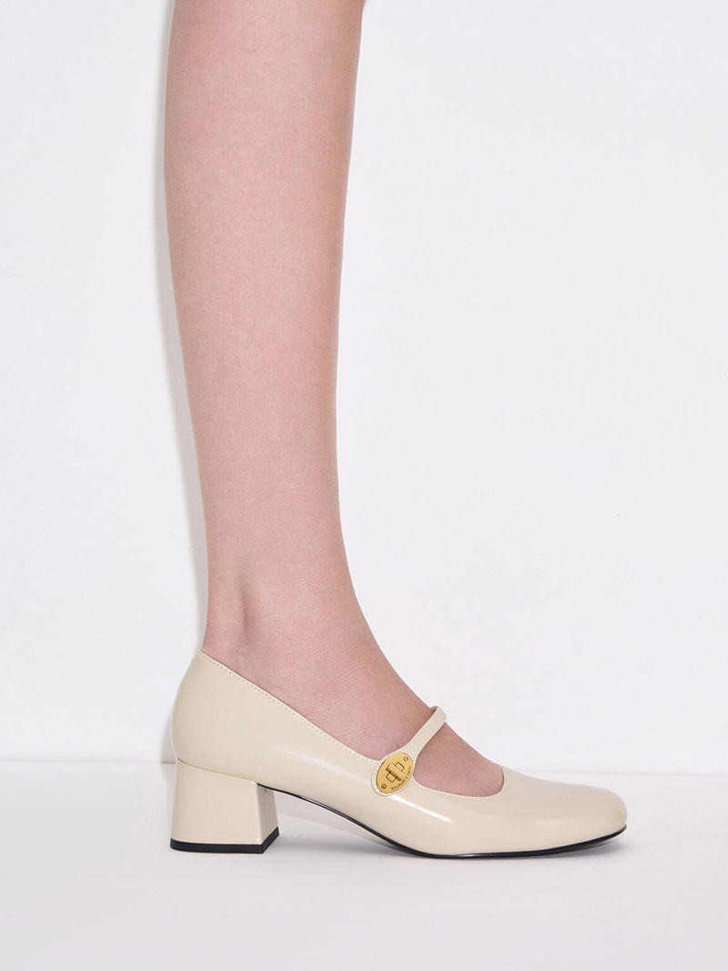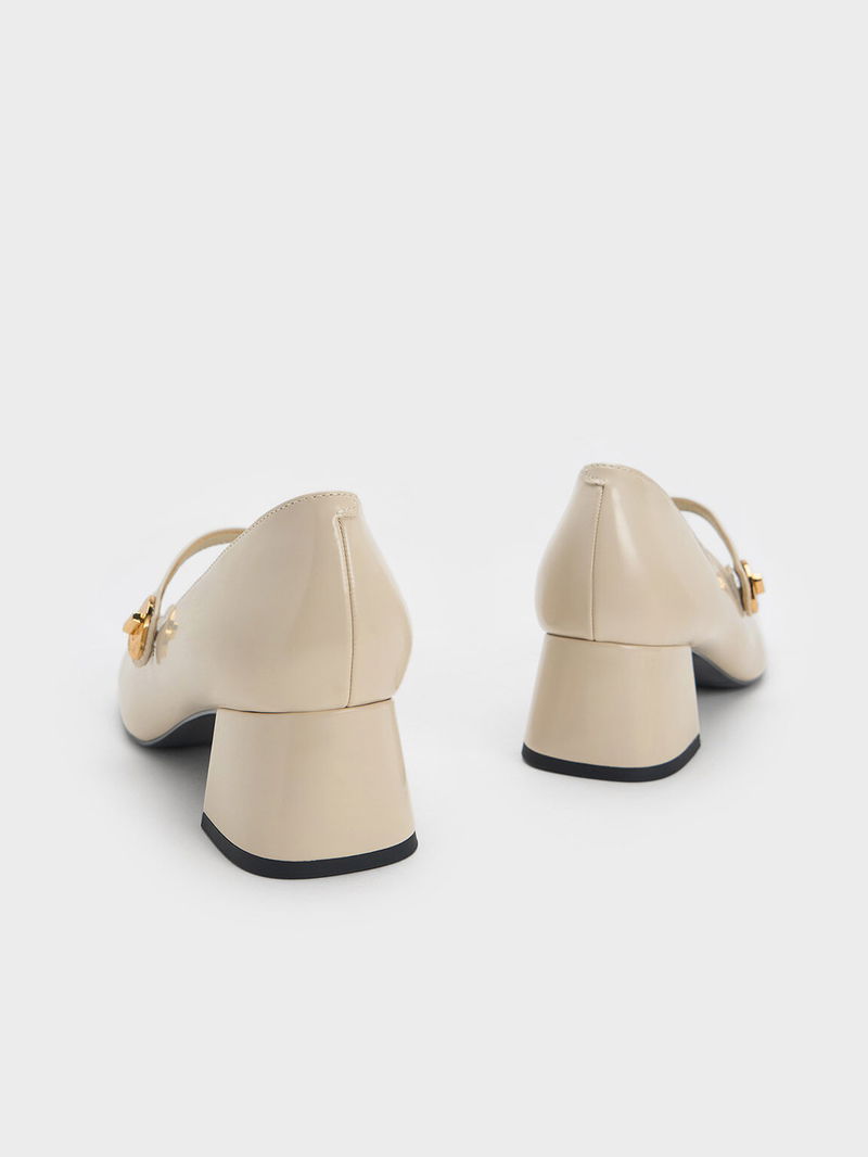Hettie Patent Metallic-Buckle Block-Heel Mary Janes