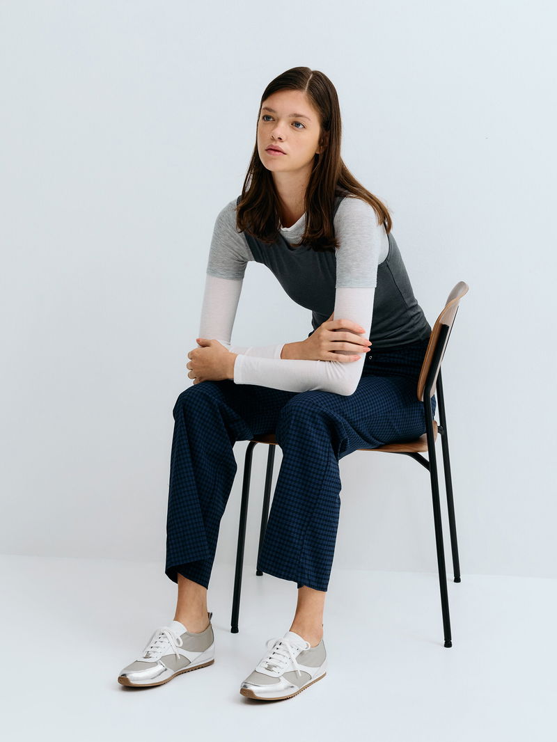 These Jace sneakers in silver are made with nylon, genuine leather and recycled leather. They feature contrast panels, low flat soles and a ruched elastic design for ease of wear. Use them to bring a hint of shine to your everyday outfits.