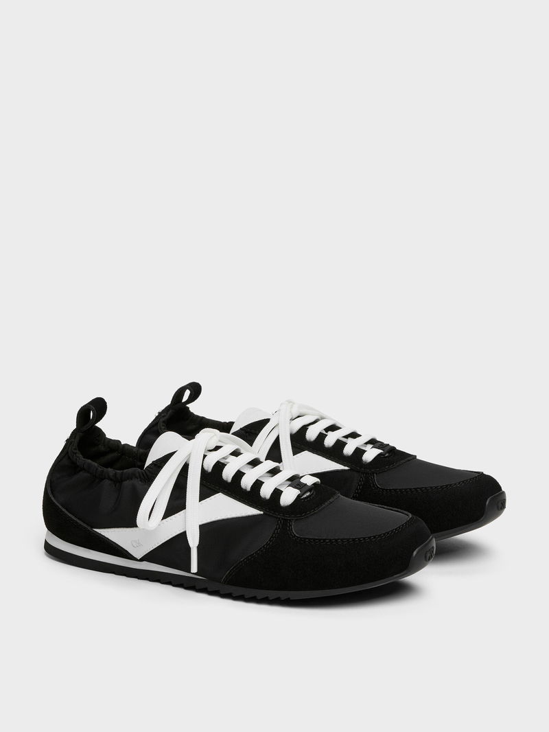 These Jace sneakers in black are made with nylon and recycled leather. They feature contrast panels, low flat soles and a ruched elastic design for ease of wear. Use them to balance soft textures with clean lines and sleek silhouette.