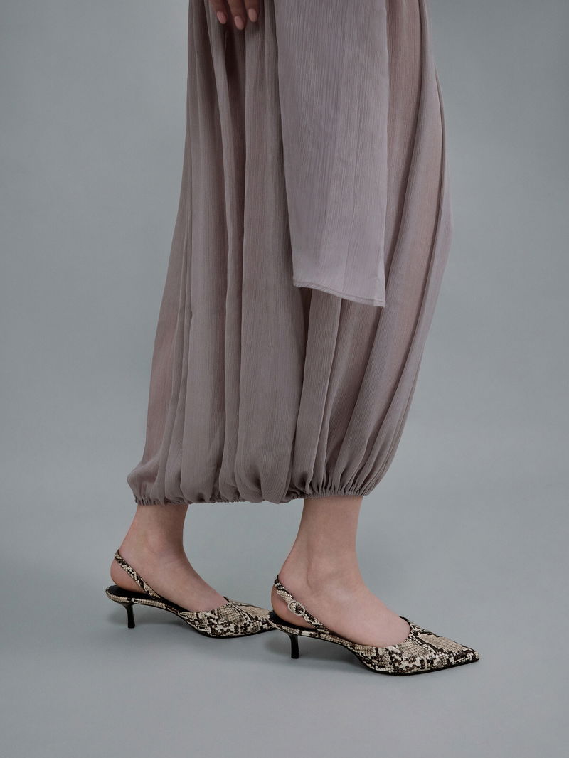 Kaia Snake-Print Pointed-Toe Slingback Pumps