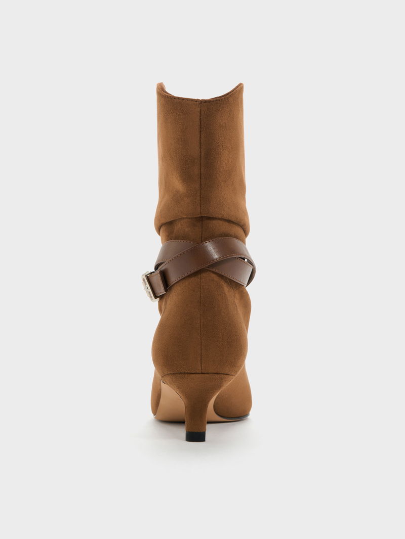 Karter Faux Suede Pointed-Toe Ruched Buckled Kitten-Heel Boots