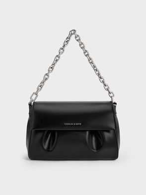 Black cloud shaped crossbody bag featuring glitter edge trimming and a zipper closure. Comes with a detachable strap.