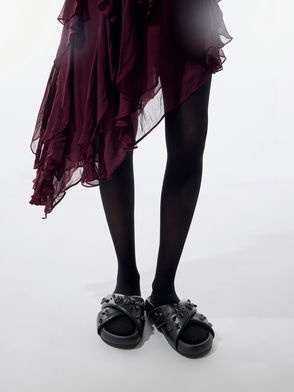 Rendered in tactile lace and mesh, these strappy slide sandals are a timeless choice that will never go out of style. Designed with a square toe and a sensible 1.5cm heel that offers all-day walkability and comfort, this nifty pair is a worthy addition to any shoe-drobe. Complete in black to maximise your styling choices, match these shoes with a lace blouse and tailored pencil skirt for an effortless desk-to-dinner ensemble.