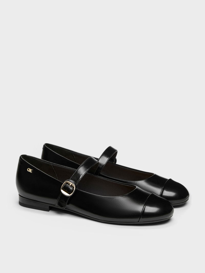 These Mary Janes in black are made with genuine leather and feature a cap-toe design, very low heels and functional buckled straps.