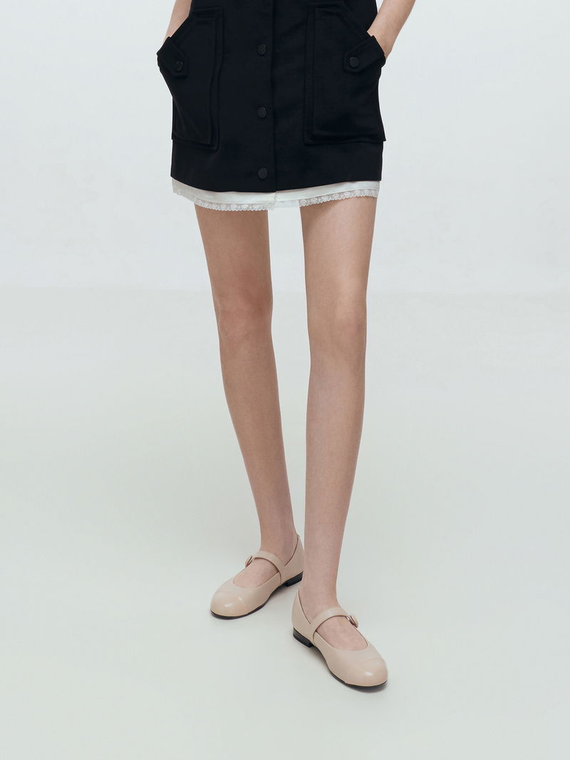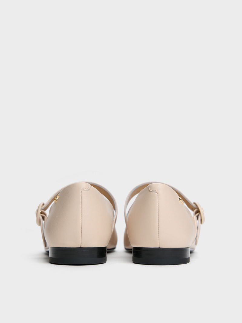 These Mary Janes in oat are made with genuine leather and feature a cap-toe design, very low heels and functional buckled straps.